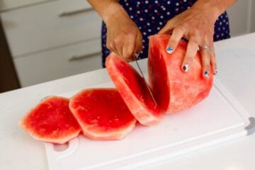 Once you learn my easy method for breaking down a whole watermelon, you’ll never go back to slicing them the old-fashioned way.