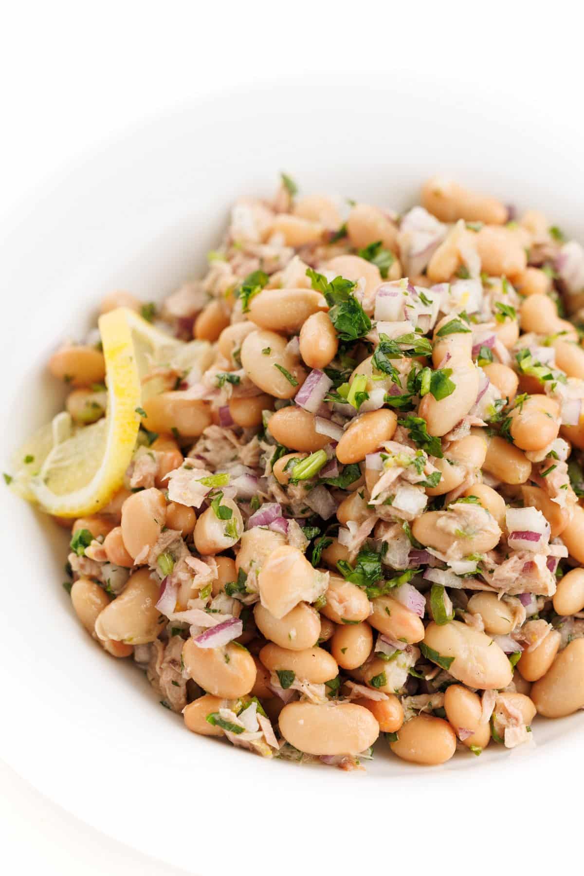 Serve garnished with a lemon wedge or slice, and enjoy your Tuna and White Bean Salad!