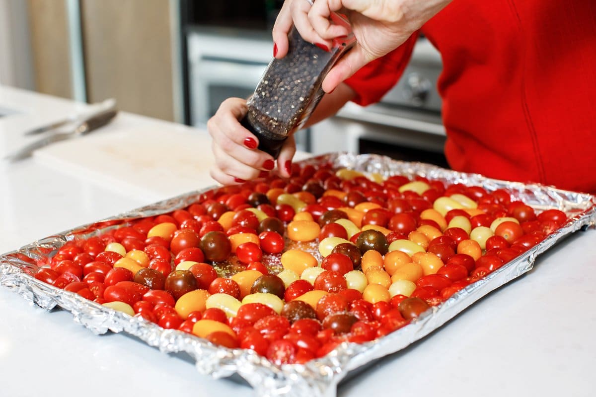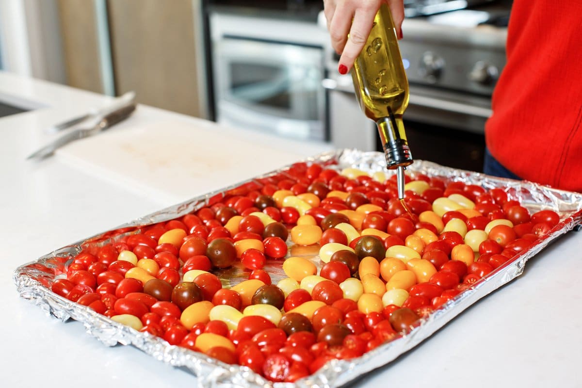 Yes! Absolutely. Any variety of tomato will work including Campari®, Zima® or Kumato®. If your tomatoes are not grape-sized, simply cut them in smaller pieces before tossing with olive oil and roasting.