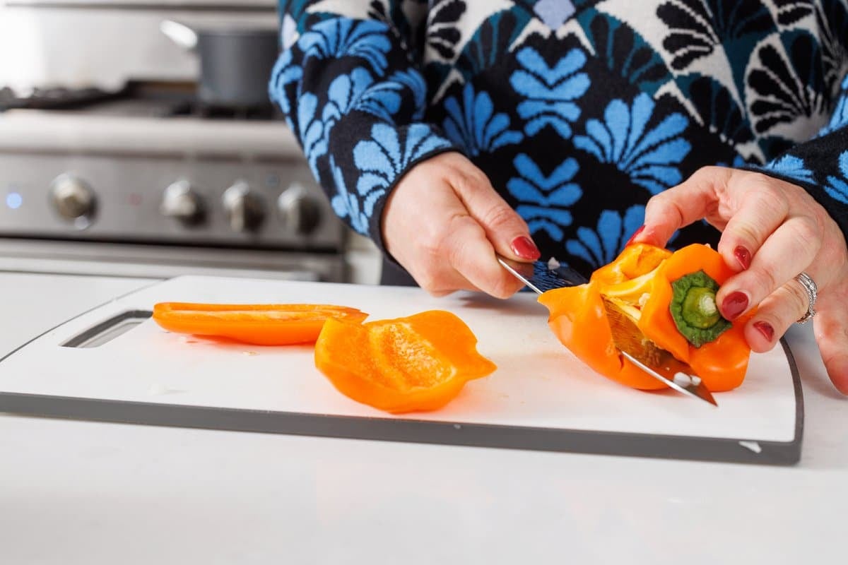 - Bell peppers: You can use any color you like, or a mixture. I like using red bell peppers as they are the sweetest, but I’ll frequently do a blend of red, orange, and yellow peppers.