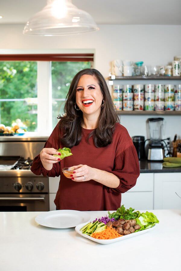To keep it low carb and high protein, I decided to turn those sweet and salty BBQ pork meatballs into lettuce cups. To serve, I add carrots, cucumber, cabbage, and fresh herbs. Of course, use whatever you have on hand.