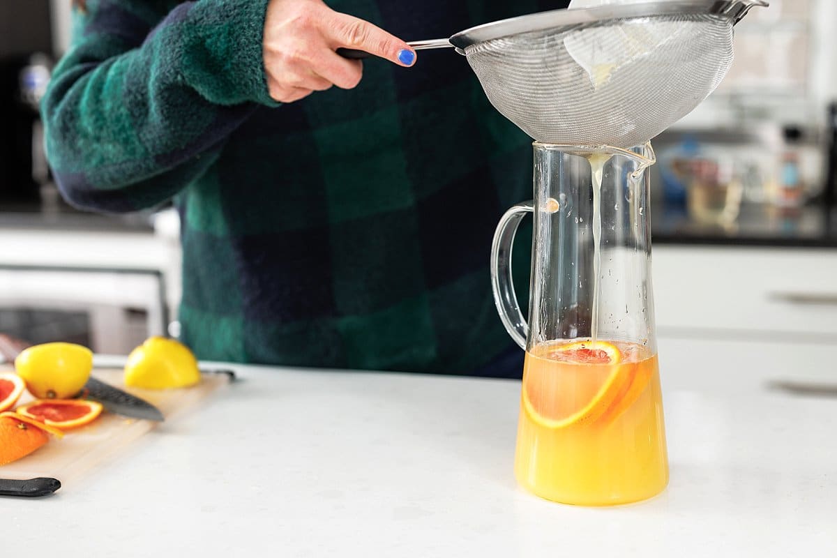 Once cooled to room temperature, strain your simple syrup into a measuring cup or bowl.