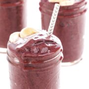 This Kale Banana Berry Smoothie makes a delicious not-so-green smoothie to jump start your day in a healthy way.