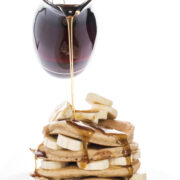 Pour batter on hot griddle, working 1/2 cup at a time. Cook until pancakes are golden brown, about 2-3 minutes on the first side and 1-2 minutes on the second side. Serve with maple syrup, butter and additional banana slices if you wish.