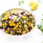 This bright and fresh black bean salsa is loaded with creamy avocado, sweet corn and plenty of fresh herbs.