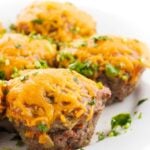 In a small bowl, mix together ketchup and mustard. Brush each meat loaf cup evenly with sauce. Sprinkle each cup evenly with shredded cheese before baking in oven for 15 minutes or until cooked through.