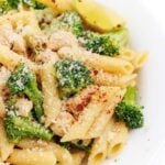 Add reserved chicken and any juices formed back to the pot with the pasta and broccoli. Stir in lemon butter sauce and toss well. Check for seasoning and adjust accordingly.
