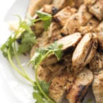A flavorful yogurt-based marinade results in juicy, tender chicken breasts bursting with warm Indian spices.