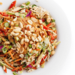 Add all of the salad ingredients to a large bowl (cabbage through roasted peanuts); set aside.