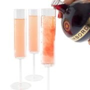 Fill eight glasses with sparkling wine and top each with 1 tablespoon Chambord before serving.