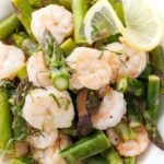 The ultimate 15 minute low carb dinner recipe, plump shrimp and tender asparagus cook until bright pink and tender in a fragrant lemon garlic butter sauce. These no-mess shrimp and asparagus foil pouches are perfect for tossing on the grill or in the oven.