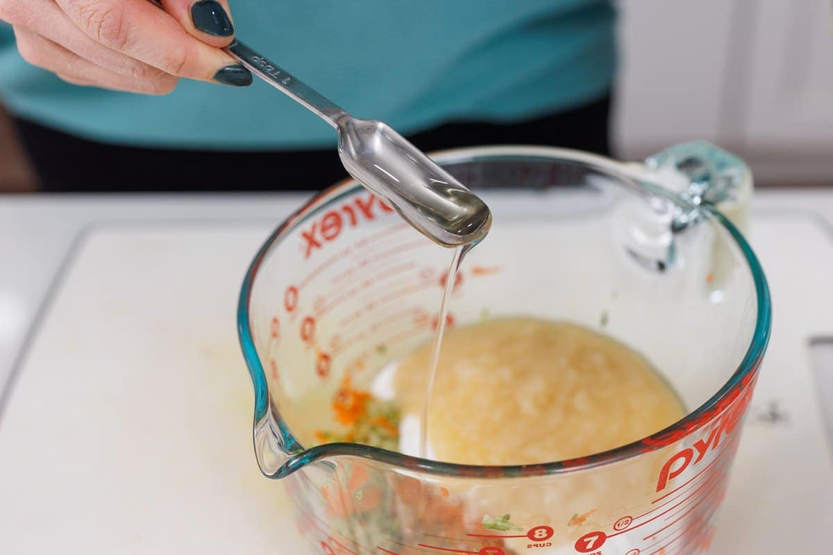 - In a medium bowl, whisk together all of the wet ingredients.